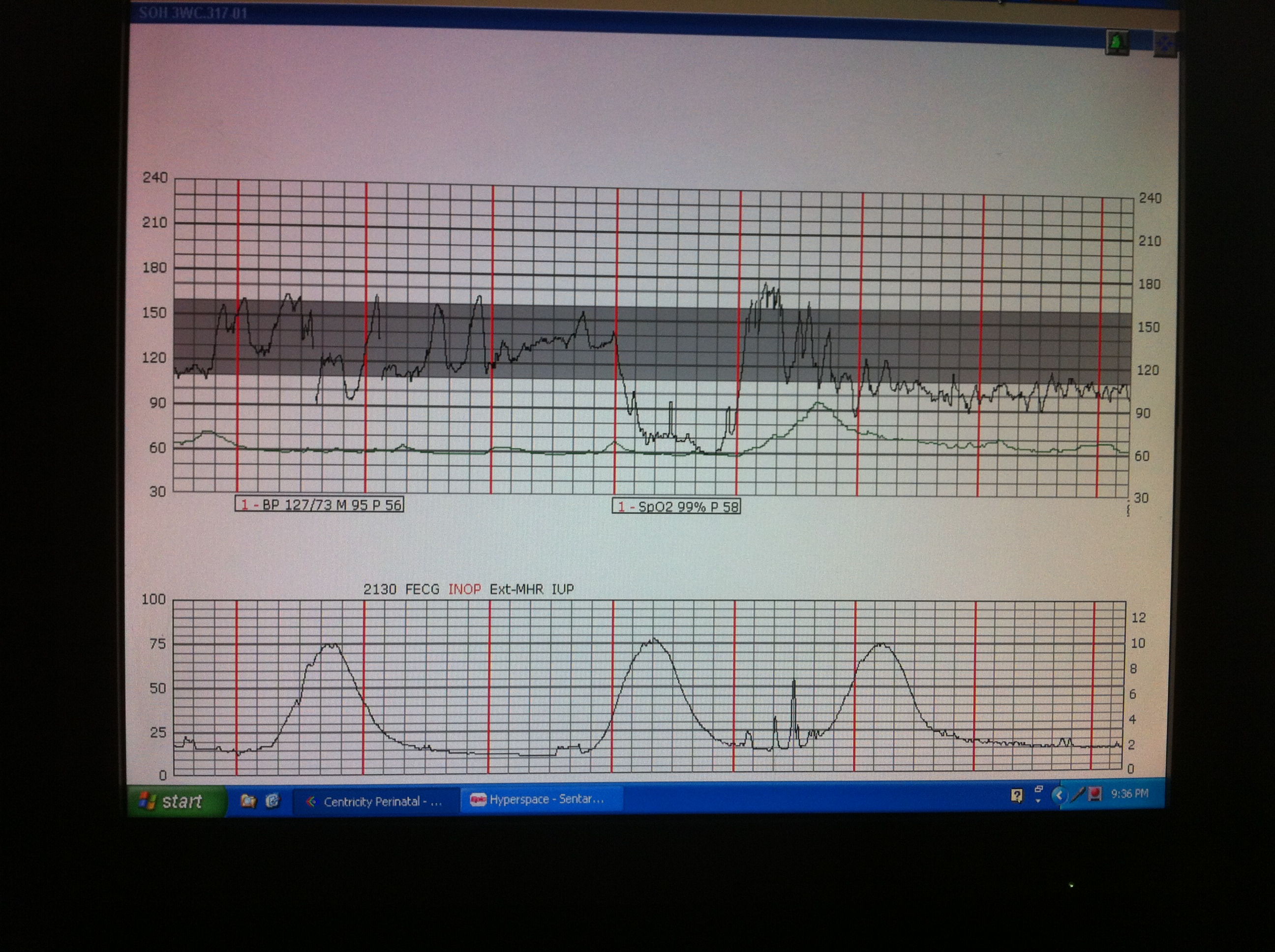 As, you can see she never recovered from one of my contractions. We were dealing with this for close to 3.5 hours of labor.