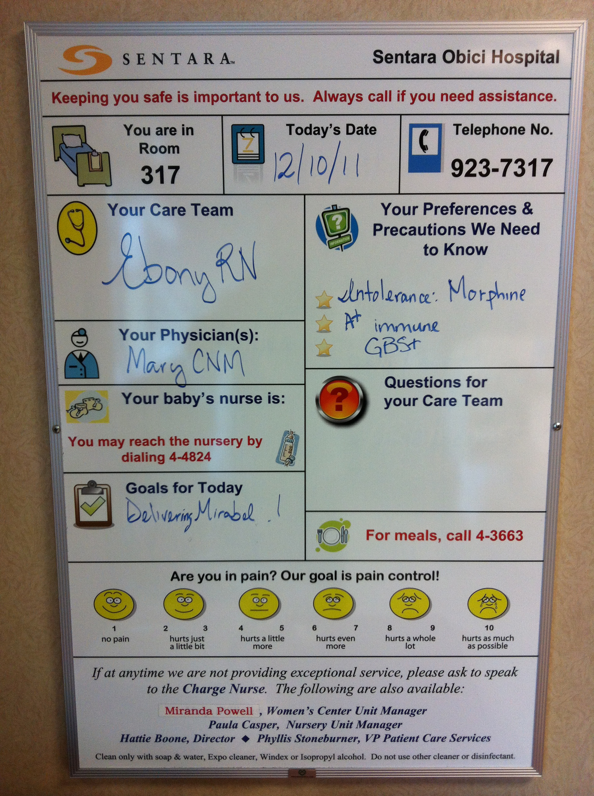 We arrive at the Women’s Center at Obici Sentara hospital and I could not  have been any happier. I did not have to fill out one single piece of paper.  I just had to sign my name on the line that I was at the hospital to delivery my child.  I’m so grateful for my OBGYN group, they took care of all the paperwork for me.