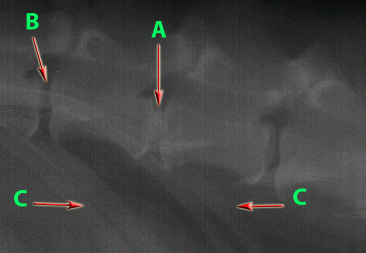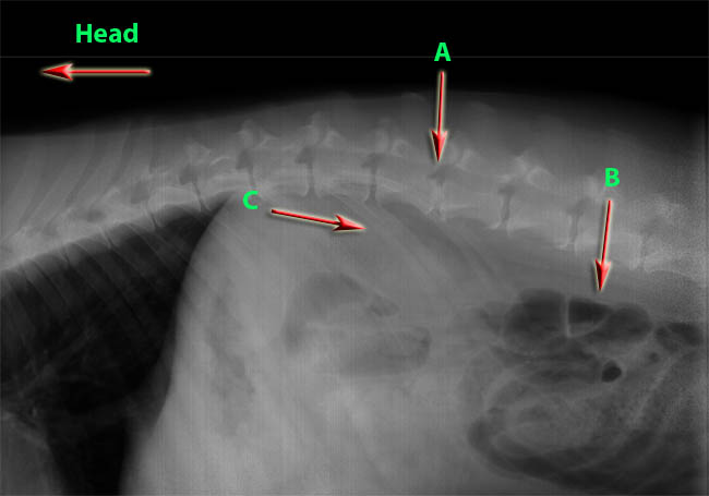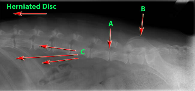 The x-rays showed a weakened (calcium build-up) and slightly moved disc. This is what is causing the ataxia (balancing, stumbling, drunkenness). Its what is placing the pressure on his spinal cord. The doctor put him on some anti-inflammatories and pain meds and referred us to a specialist.