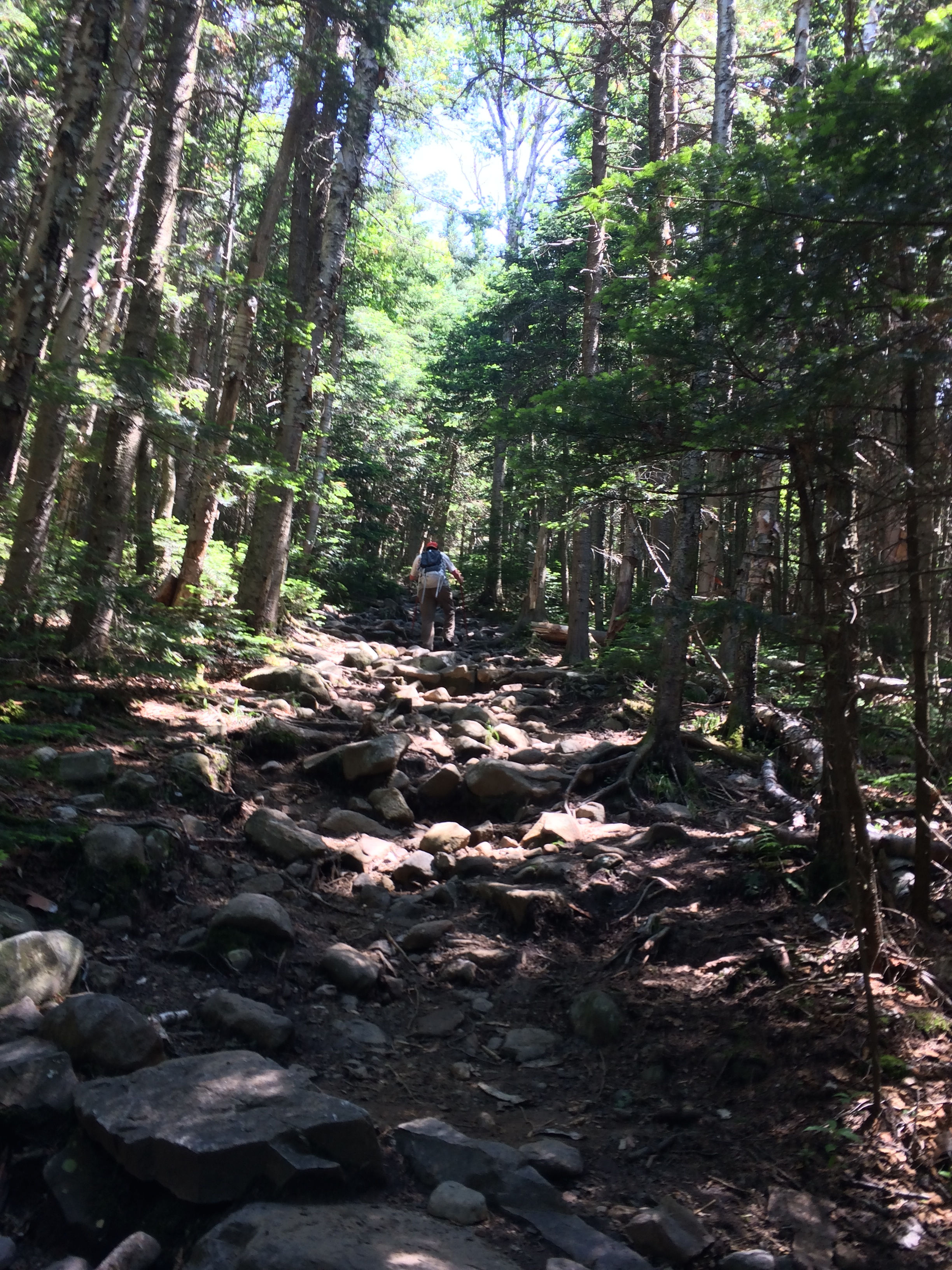 Your descent back to the hut will first be either Kinsman Trail Ridge or Hi-Cannon Trail are both challenging ascents and just as challenging if not more challenging descents because of fatigue. The Jimmy-Fishing trail is not as hard, but you will first have to make it to it.