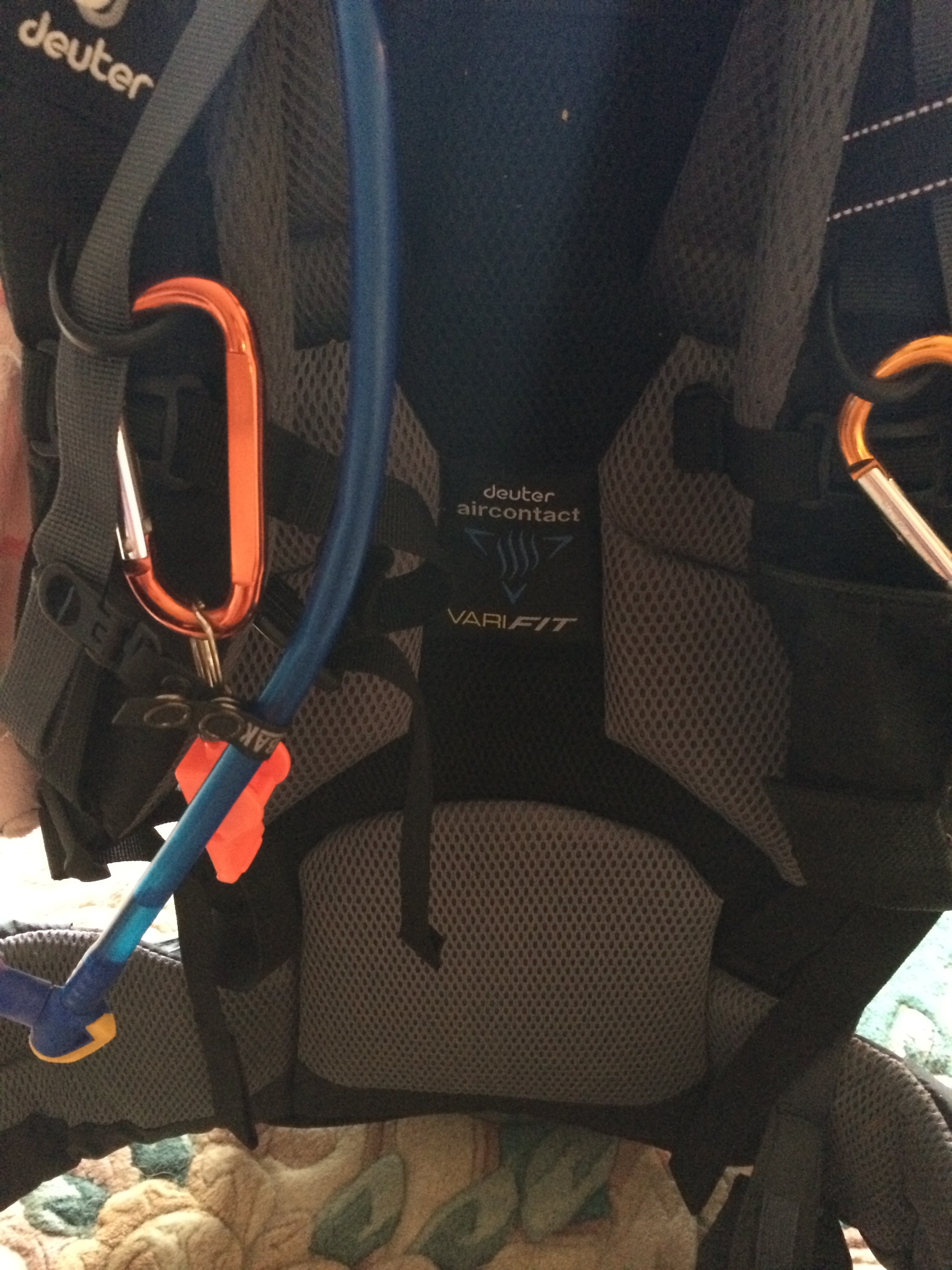 3) There is a location for a 2L water bladder. We use a camel back model. Deuter does not seem to have a bladder designed for this carrier or at least not that we could have locally. It’s great because you can use it, but so can you child. However, we purchased a 1.5L waist camel back that we attached to the back of the Deuter that is just for our child. Again, we plan for the worse case so the more water the better. We found in the summer, the 2L bladder was empty by the end of a 8 to 10 mile hike. This does not leave room for error. So, we created a way to make it work for us. The design of the Deuter allowed us to make this adaptation without compromising the structural safety of the carrier. It helps that my hiking partner is an engineer.