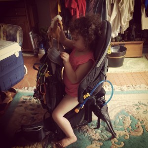 It is really a good idea to have your hiking partner and your toddler with you when trying on packs. Most places have a dummy doll that will simulate your toddler, but there nothing like doing it for real. Seeing how your toddler sits in the pack and moves in the pack is helpful. A dummy just doesn’t seem to make those moves. Yes, they will react in some manner. Most likely on the scared side. It’s outside their norm, so bare with it. Do it after nap time or well before nap time. It’s definitely a stressful time for them and our little one as been in a carrier since she was brought home. Two Dogs, a husband that travels and no nanny nor family in the area makes child carrying a must unless you don’t like getting things done. But that’s another story….
